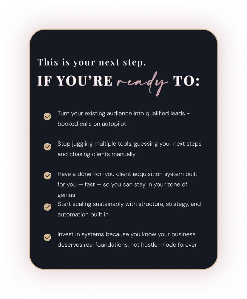If you’re ready to turn your audience into a predictable flow of dream clients — I’m here to build the system that makes it happen.
